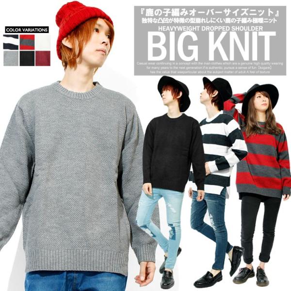 畦編みビッグニット ニット セーター メンズ クルーネック 厚手 トップス ビッグシルエット ジギーズショップ Jiggys Shop D Fashion
